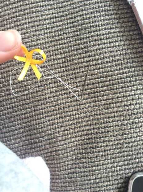 Wähle welche Seite hinten ist und stecke die Nadel von hinten nach vorne. Danach von vorne nach hinten. Das mache para que viele hombre bis Sie das Gefühl haben das es gut aber ist am Ende soll die Nadel hinten sein. nicht Knoten am Ende des Fandens vergessen!
