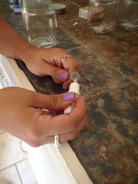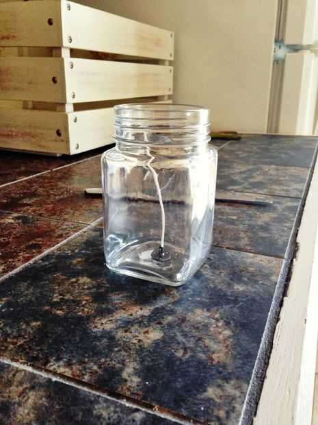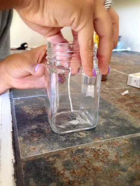 • Colocar la mecha dentro de tarro y presione la parte inferior de la lengüeta metálica en el centro de la parte inferior de la jarra.