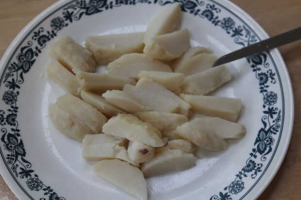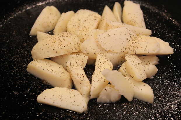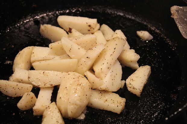 Echan en un recipiente con algún aceite y sazone con sal y pimienta.