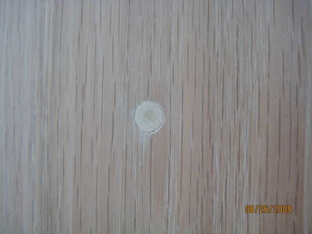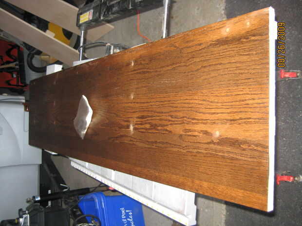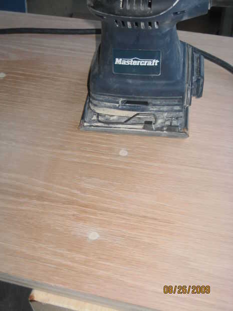 Llene los agujeros con masilla para madera y deje secar. Cuando se seca debe formar una masa que será arena abajo liso. Espere a que seque completamente. Yo estaba impaciente y no esperó lo suficiente. Lijado húmedo relleno sólo el papel de la goma y te obligan a cambiarlo. Simplemente espere.