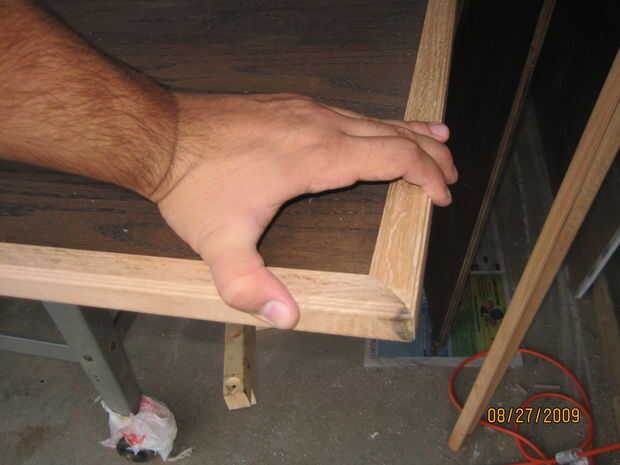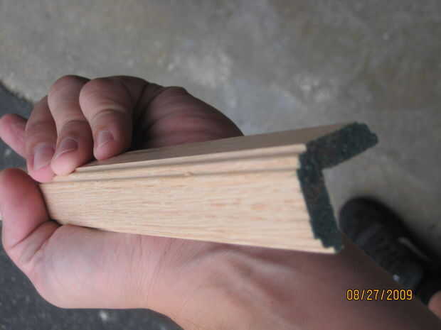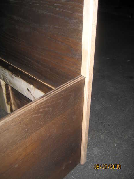 Puesto que la madera era roble terminé con el moldeado del roble. Mancharon la moldura con un tinte más oscuro para conseguir un poco más de profundidad.