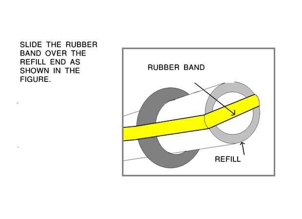 Ahora para cargar la munición... Estirar la goma y deslícelo sobre la recarga como se muestra en la figura. Esto puede algún tiempo y necesitan algunas prácticas, pero una vez usted consigue la caída de la misma ha SHOWTIME!