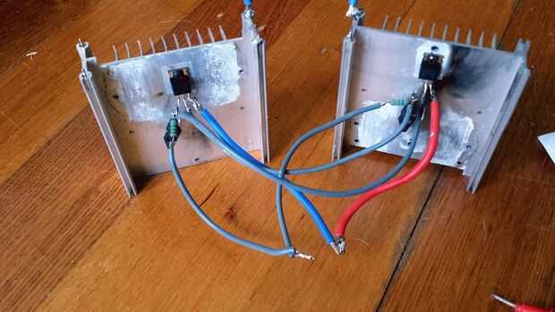 Los mosfets están montados sobre disipadores de calor de gran tamaño, puede usar los más pequeños, éstos tenía a la mano y era demasiado perezoso para buscar los más pequeños.
