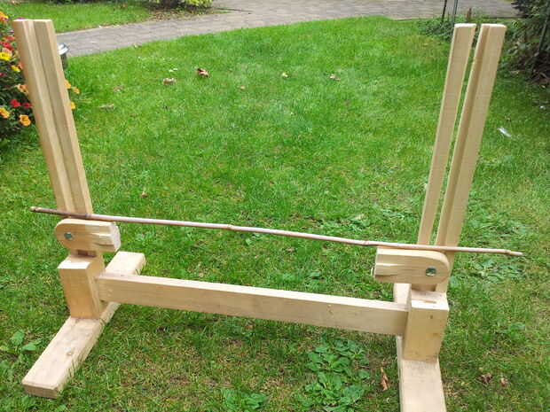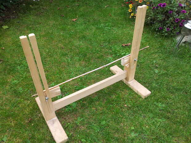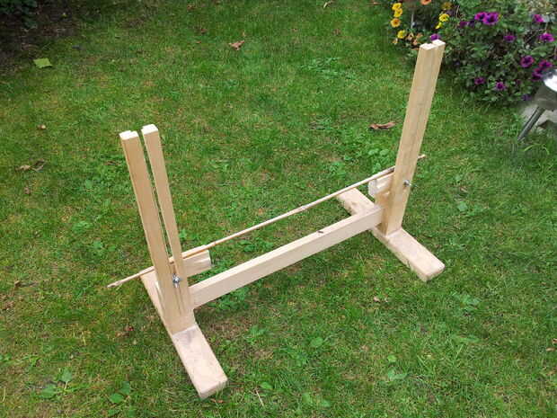 Por último, tomar los puntos de anclaje y sujete a los soportes verticales (quizá quieras añadir un anillo pequeño en cada tornillo para aumentar el ancho eficaz de la tuerca de mariposa).