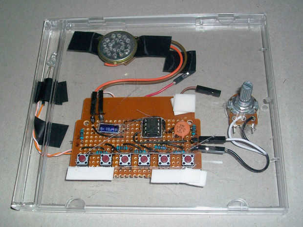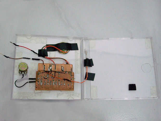 concedo el perfboard a la caja del CD con 'Cinta espuma doble cara' en lugar de utilizar pegamento, en caso de que quiero modificar el circuito más adelante. Pero si quieres hacer el circuito constante y permanente te recomiendo para usar algunos caliente pegamento.