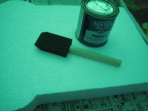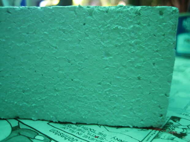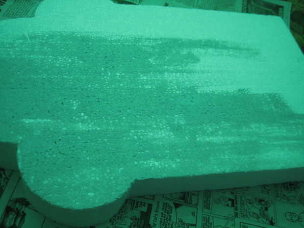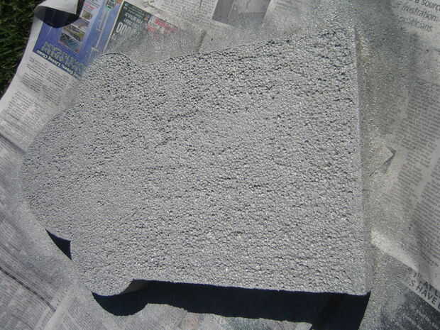 Utilizando 1 costa luz de imprimación de látex (o no la cartilla) y una capa pesada de la pulverización de piedra le dará la apariencia/textura de la piedra de corte (las sustancias químicas en el spray ligeramente disolverá la espuma)