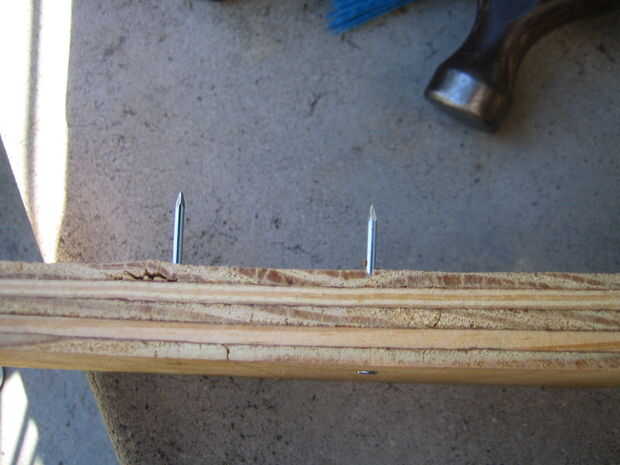 Los clavos a través de la Junta donde irá la piedra con el fin de colocar la piedra.