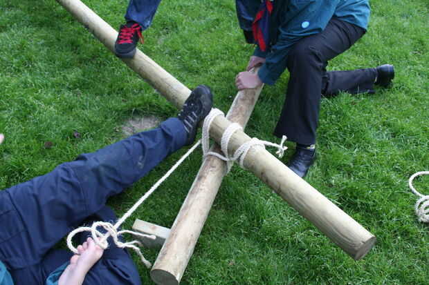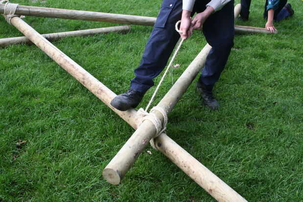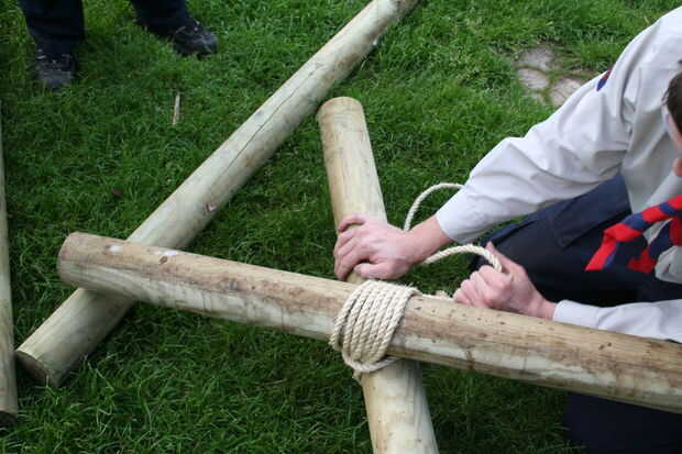 Tanto amarre son simples. Comencé con demos de ellos, a continuación, deje que los scouts llegar en. Esta es la primera vez que los scouts en las fotos probablemente les han atado. No somos perfectos, pero ha levantado y es práctica, práctica, práctica!
