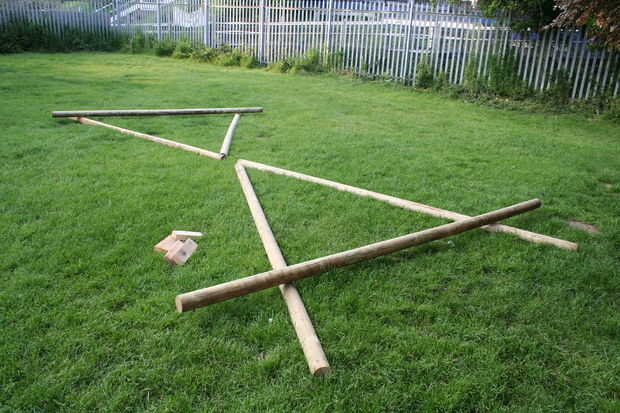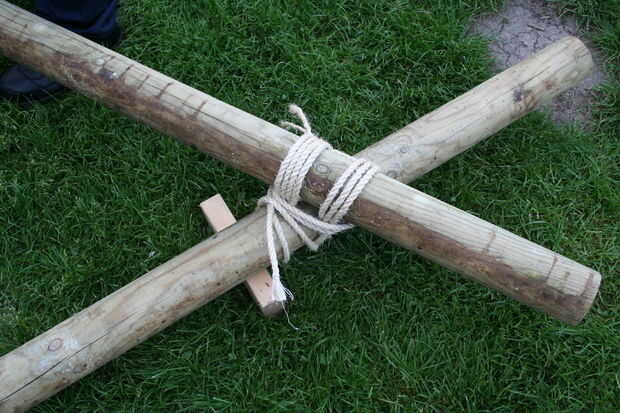La parte superior incorpora un Amarre pura y la viga inferior requieren dos trincas cuadrados. Ambas cintas se comenzaron con un simple tirón de clavo de olor.