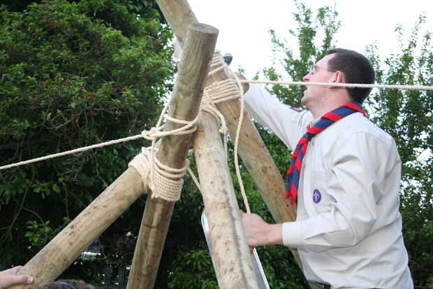 En mi último proyecto pionero que hemos construido un sencillo vaivénEn este instructivo vamos a utilizar exactamente los mismos nudos, número de polos y métodos para construir un puente de mono.  Como el último que estamos utilizando el mismo árbol