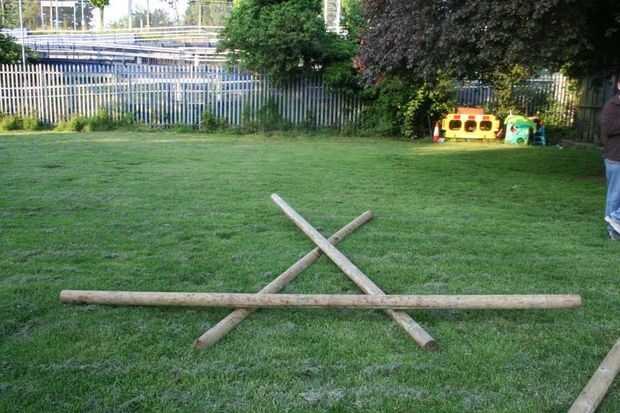 En este proyecto pionero simple vamos a construir un columpio.  Este particular columpio está utilizando postes de madera de 3,5 metros tanalised.  Yo no recomendaría tanalised, pero sazonada pino despegada como esto da mejor agarre y se pueden fract