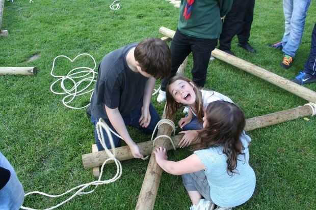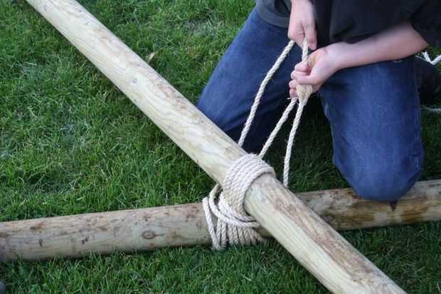 Simple pionera - construir un puente de mono de postes de madera (2 / 6 paso)