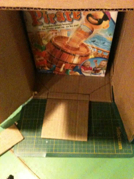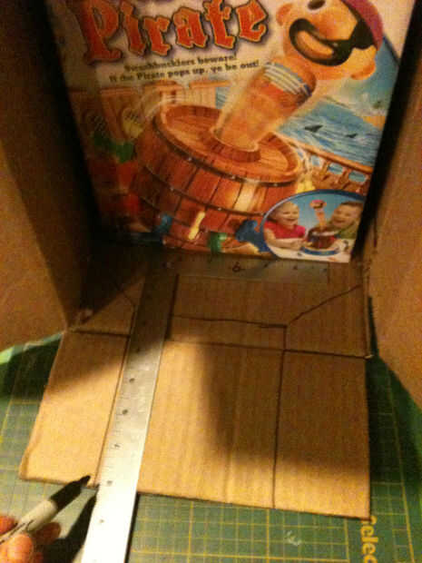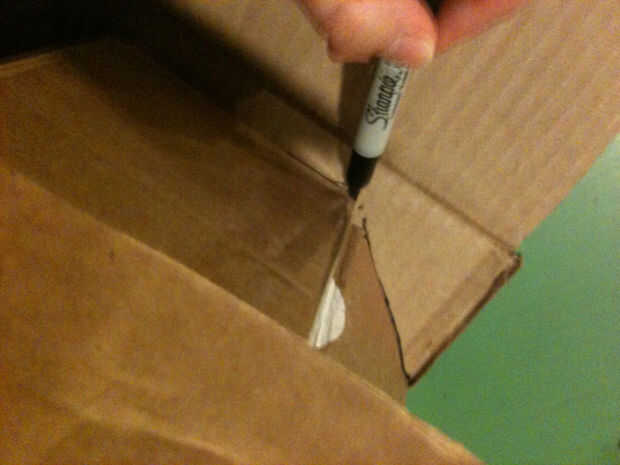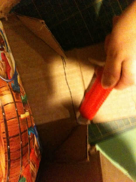 Doblar cada aleta estrecha corta en un ángulo agudo en la caja. Ver foto #5 aquí. Utilice el lado opaco de su corte de caja para perforar el interior del cartón si es necesario. CUIDADO:: NO EMPUJE DURO CON CUCHILLA CUANDO PERFORACIÓN.