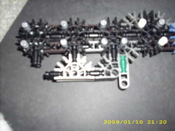 esta es mi arma favorita de K'nex construido por la propia. es una foto única pero puede ser muy potente dependiendo de cuántas gomas le agregue es el mecanismo de disparo. Me gusta porque hace buen uso de piezas de flex. Trabajar la pistola tirando