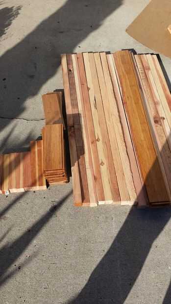 Luego fui a las piezas de refuerzo que se ajustan entre los postes verticales. 4 piezas de lado largo y 4 piezas de lado corto. El lado largo piezas quieren ser la longitud en el tablón largo menos el ancho de dos de los puestos, está bien hacer un poco más de esto que las tablas no interfieran entre sí. El lado corto piezas quieren ser la longitud de la tabla corta menos la anchura de dos de los puestos, está bien hacer un poco más de esto que las tablas no interfieran entre sí.