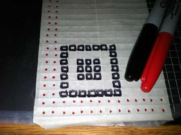 A continuación, marcar los cuadrados que se cortarán hacia fuera. Tire el código QR que creó anteriormente en el monitor para usar como guía.