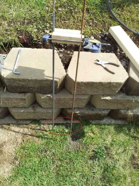Centro de alambre y envolver como antes. Debe tener un poco más de un pie de alambre sobresaliendo. (He insertado algunas líneas azules para ayudar a ver el cable que sobresale)