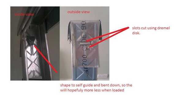 Una vez que ha creado estos pedacitos de metal doblan por la mitad en el centro y cada uno de los puntos en las ranuras que ha cortado en el cuadro. Tratar y cortar a la anchura de los agujeros en el marco que ha creado. Entonces les golpee con un martillo.