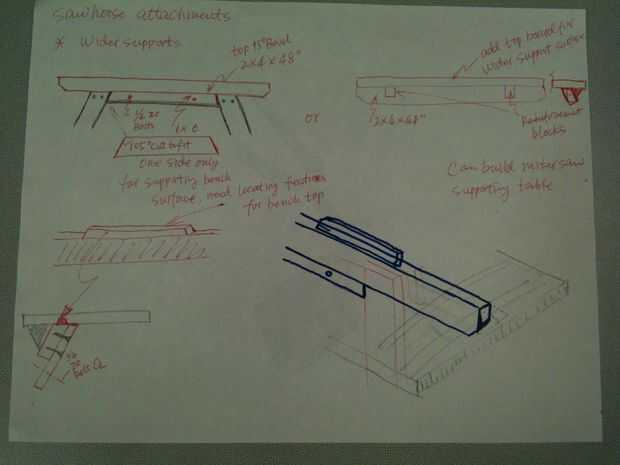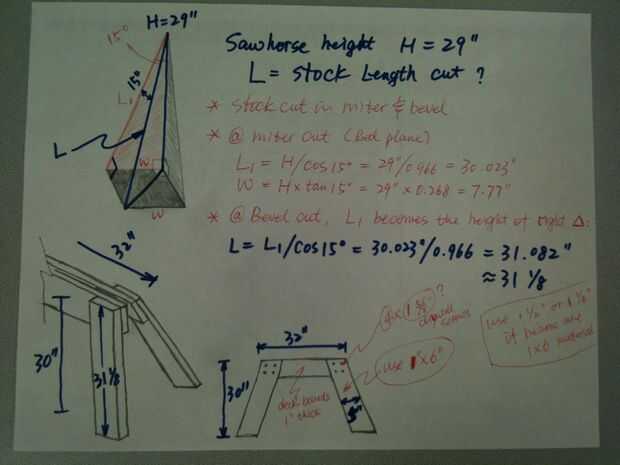 Soy un ingeniero, en la mayoría de los casos, haría esto en mi cabeza, pero decidió llamar a este tiempo, porque estos caballetes son sólo parte del proyecto conjunto portables de la tabla. Quisiera llevar el registro de lo que hacía, de lo contrario, el cerebro de forty-algún-year-old de mina kind'a le gusta olvidar las cosas. Aquí está la prueba, me di cuenta que en la primera foto, escribí a la altura del caballete como 30" en dos lugares en la parte inferior, que eran errores, creo que estaba tratando de decidir si construir en 29" o 30" de altura y en mal estado les en el dibujo, antes de la decisión de corte de hasta 29" acabado altura usar un tablero de 8'.