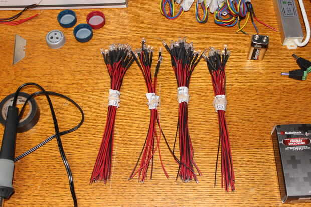 El LED será un solo LED con el abrigo del encogimiento de la tubería y sobre un alambre de 6 pulgadas dual saliendo rojo y espalda. Estos se correlacionan con el rojo y negro caja que pones en tu alimentación, pero entre la fuente y aquí, las conexiones cambiará a conectores RCA.