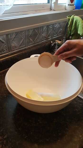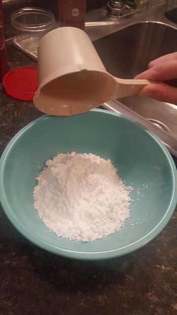 1. Añadir 1 taza de polvo de azúcar en el bol pequeño.