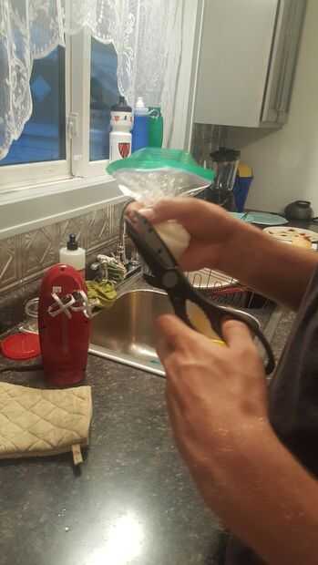 4. Cortar un extremo muy pequeño de una esquina de la parte inferior de la bolsa. (Aproximadamente 1/16 de pulgada)