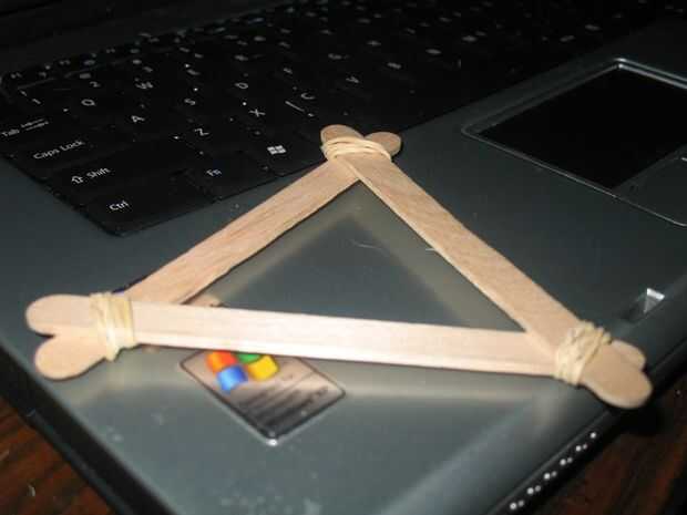 esto es fácil de construir y sólo utiliza 5 palitos. Explota cuando golpea el suelo. Un popsicle stick mi descanso pero generalmente no sucede.Paso 1: Esta es la parte fácil Solo mira la imagen.Paso 2: Esto es cuando se pone duro Asegúrese de constan