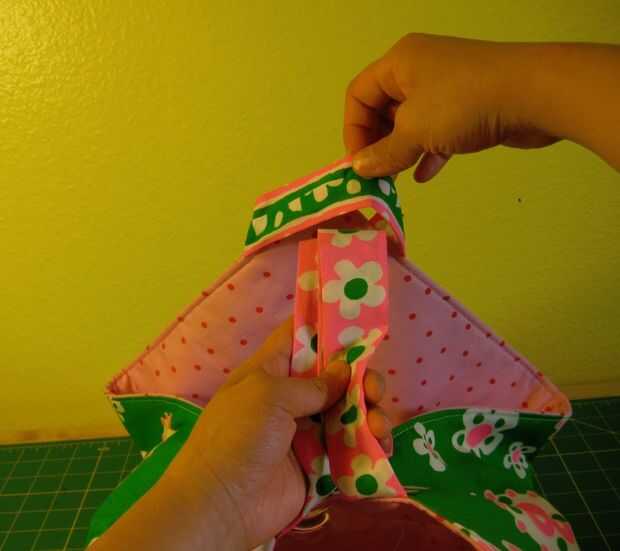 • Tomar cada una de las tiras más cortas y lazo alrededor del "poste".