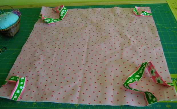 • Aplanar la correa contra la gran plaza e hilvanar hacia abajo (a mano o con una máquina de coser). Esto se asegurará de que no quedar atrapado en las costuras exteriores cuando estamos montando la portadora principal.