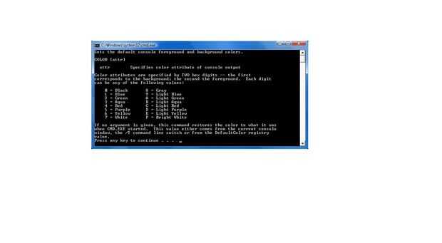 A la derecha en primer lugar cuando su programación por lotes tienes que escribir 'color' entonces uno de los siguientes número y letra: