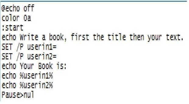 lo mismo con el arranque del programa de la matriz pero el 'SET /p userin1' es del comando fueron puede escribir.