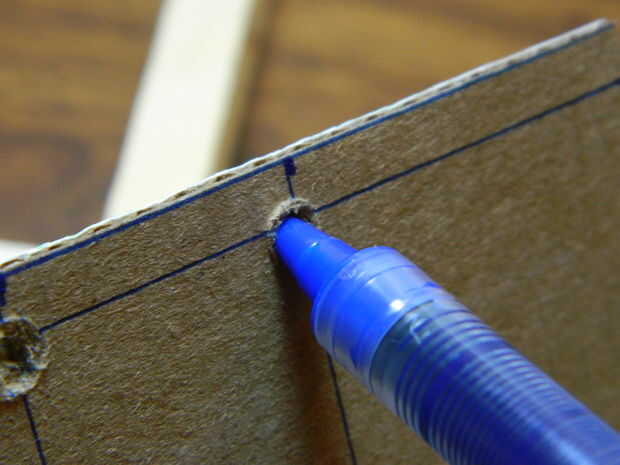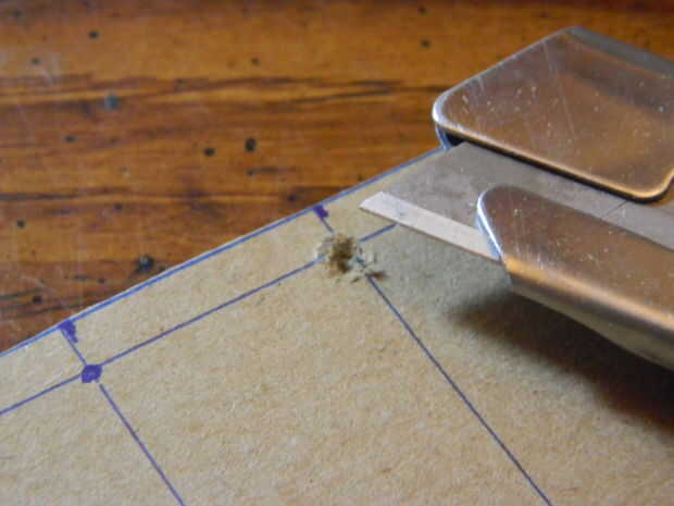 Consejo: Si está utilizando un cuchillo como perforar los agujeros, asegúrese de limpiarlos haciéndolos sea mayor que la necesaria o forzando el material a un lado que hay un agujero distinto con un lápiz o pluma. Esto es para asegurar que la cadena puede enroscarse fácilmente a través de los agujeros y hará el proceso mucho más fácil hacer las cubiertas.