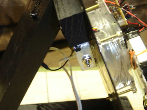 -Utiliza un lazo de alambre para hacer un alivio de tensión para el cable y agregó un interruptor SPST para que puedo apagar el encendido/apagado del ventilador.