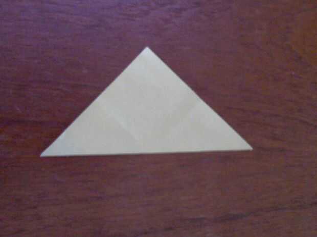 Dé vuelta la nota adhesiva y doblar otra vez, pero esta doble tiempo de esquina a esquina en lugar de un lado a otro.