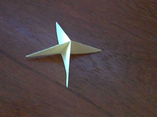 Este paso es totalmente opcional, pero muy recomendable, ya que hace todo mucho menos confuso. Si usted toma su triángulo y siente a los lados, usted encontrará que cada lado está cubriendo encima de otra cara de las dimensiones exactas. Doblar estas aletas hacia fuera para que los cuatro de estas aletas están en ángulos de 90 grados uno del otro, y puede levantarse el papel para que se vea como una pirámide. Ahora, ponga una marca en ambos lados de dos aletas opuestas. Ahora repetir todos los pasos con las otras 5 hojas de papel plegados y marcados.