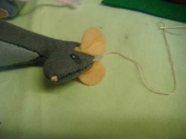El noes es bordada en bucle y en el extremo del hocico de ratones, una vez que había hecho había atado apagado y tiró de la cola del hilo a través del cuerpo corte de donde salía para que la cola de la banda de rodadura está dentro del ratón.