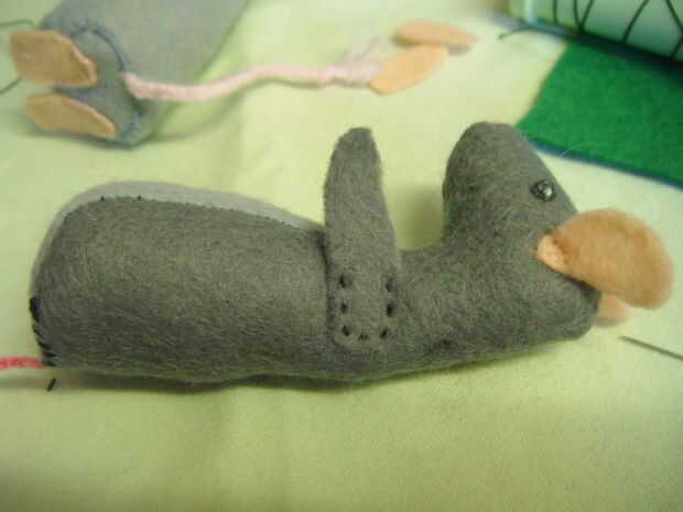 Otra vez esto puede ser más fácil pegar a estos en el lado del cuerpo del ratón, pero si como yo no tienes pegamento y luego que estas en el mismo cosido como los oídos haciendo ambos al mismo tiempo, costura con el brazo del cuerpo y de nuevo, sólo una puntada básica de funcionamiento,