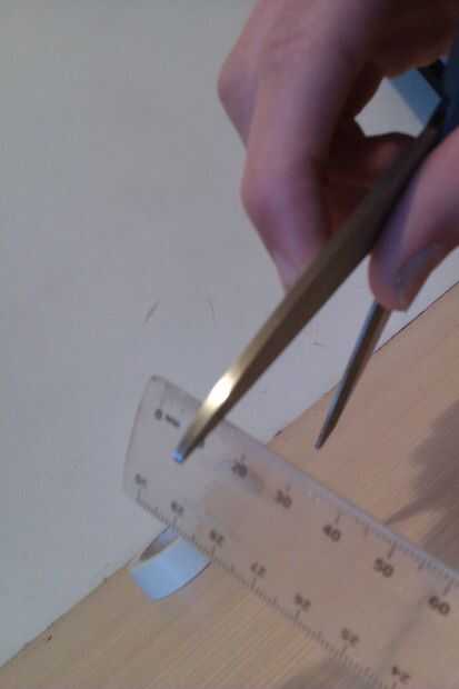 Con las tijeras corta en el lado de la regla.