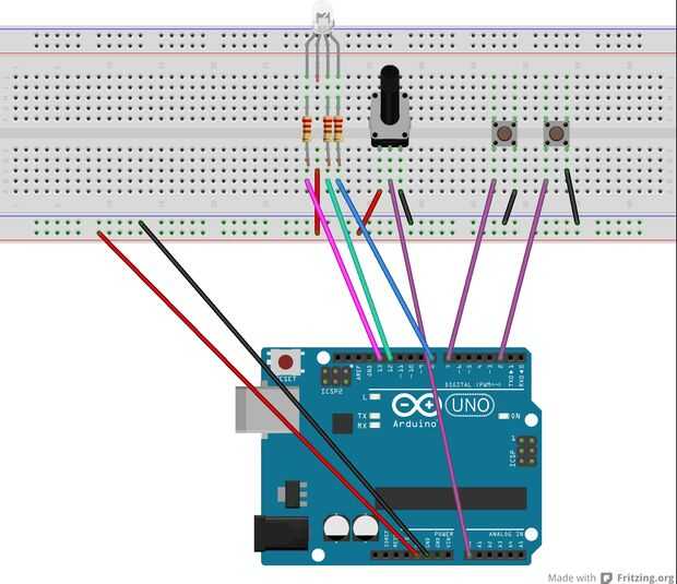 Nota: vamos a usar la extracción interna hasta resistencias de los botones así que no tenemos que agregar una resistencia extra para los botones de