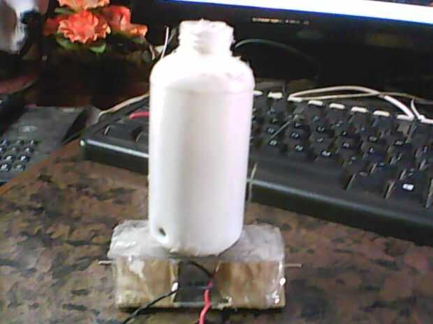 1 Coloque la botella de blanco en el motor se muestra en la figure.don't consigue confundir que dos motores están conectados con dos escalas para arriba y down.so, conecte la botella al escala superior.