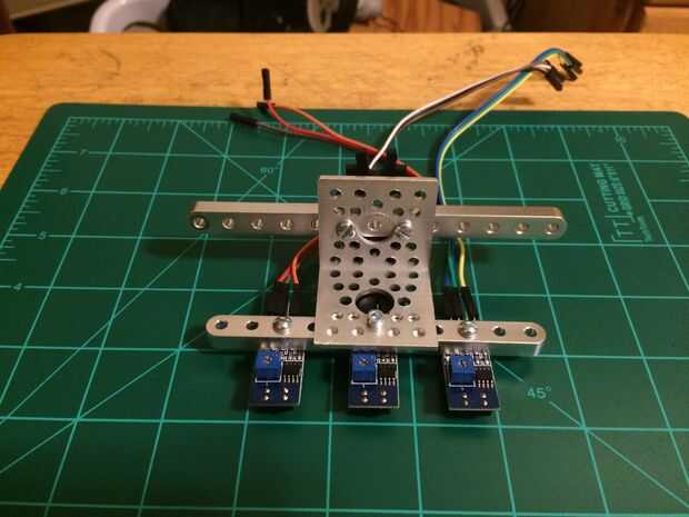 Después de que el chasis está montado, tome las dos vigas Actobotics, soporte de metal, ABS y los tornillos suministrados y poner el montaje del sensor de línea como en la foto. El 3 de 3. 25" tornillos y tuercas se utilizan para montar los sensores de IR a la viga. Montaje en como se muestra (aunque tus haces pueden ser más cortos que en la foto)