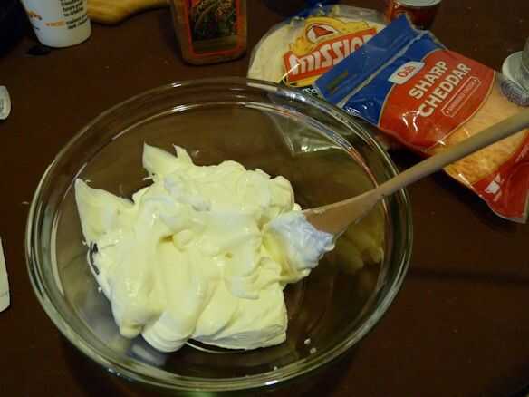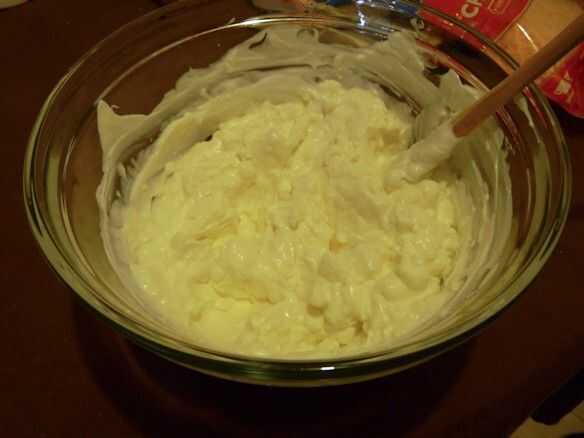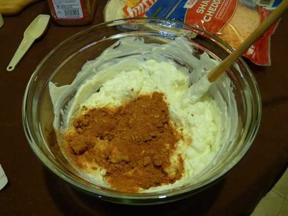 Como se muestra en las fotos, es más fácil de añadir los ingredientes en orden. Asegúrese de dejar el queso crema suavizar un poco, demasiado, o tarda mucho más tiempo para mezclar!