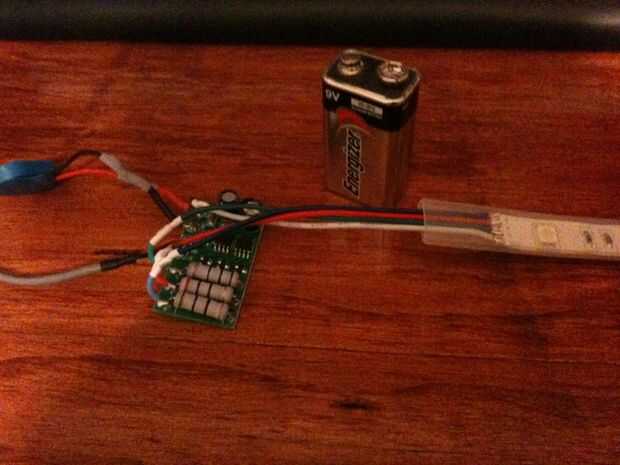 Una batería de 9v o una fuente de alimentación te gusta entre 9v-13v... No estoy seguro pero creo que usted puede obtener los filamentos del rgb led para 5v, pero palillo con 12v causa que más accesorios se hacen de los 12v...