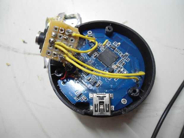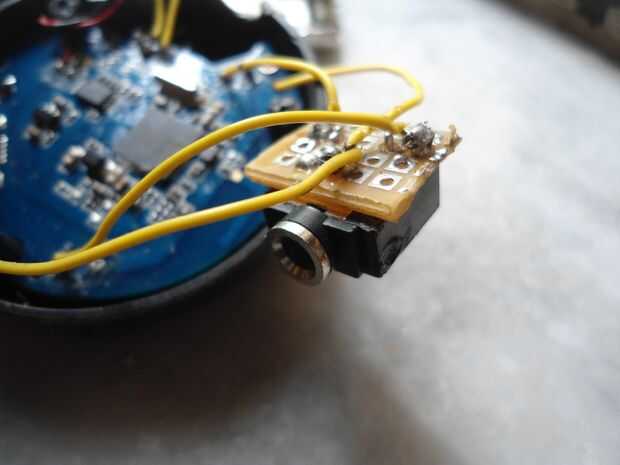 1. Coloque al conector aux en el pcb. Corte la parte de la placa con el conector aux.