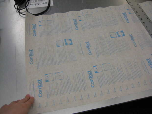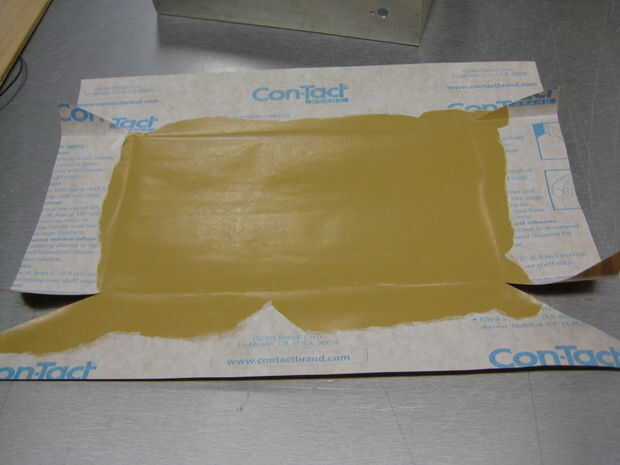El resto de la caja con papel de contacto de la línea. No todavía despegar el forro para la última 1/2" alrededor de los bordes como usted tendrá que mantener este pegajoso pegamento en cuando pegue el caso cerrado.