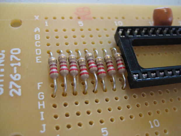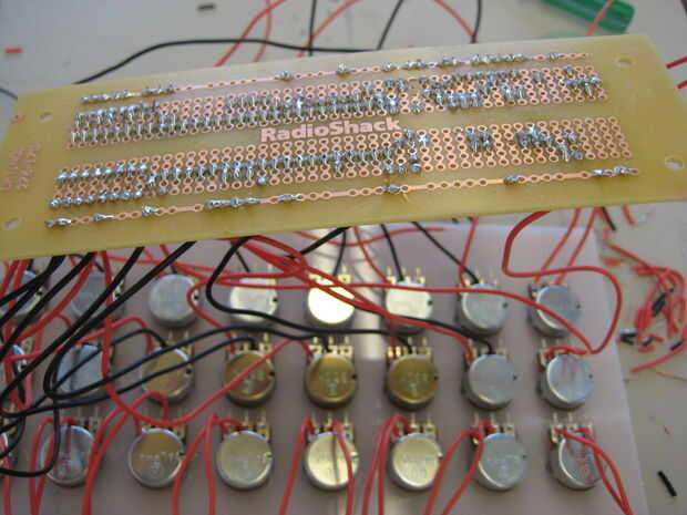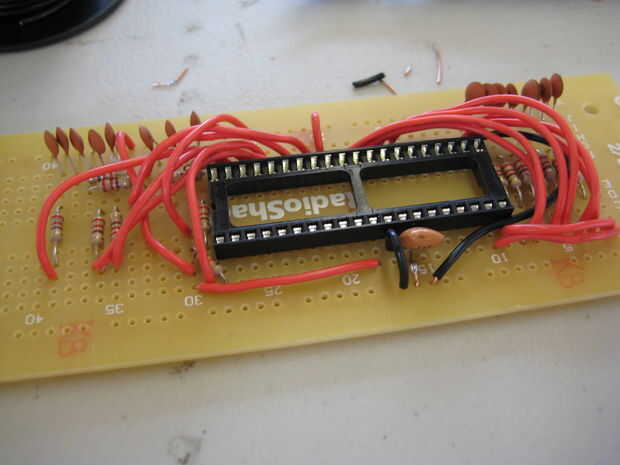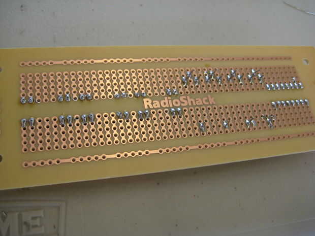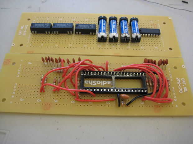 Esto requerirá utilizar una gran cantidad de circuitos. He utilizado dos de Radioshack. En uno puse el chip PIC y el regulador 7805 (y un relé para que se quedó sin espacio). En el segundo tablero puse los relés y el cambio de registro.