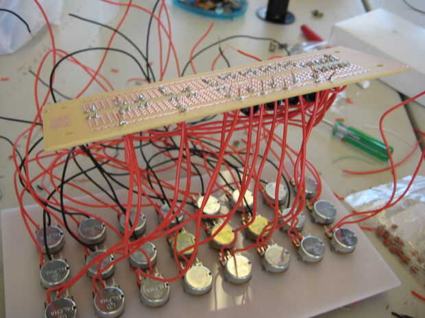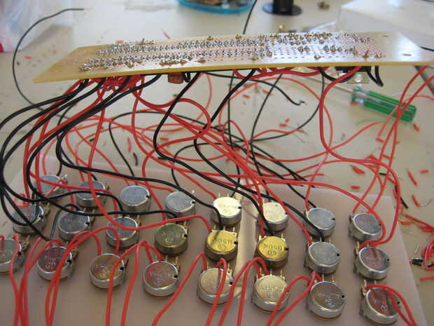 He construido tanto el circuito como pude y luego agregué los potenciómetros y por último la había conectado al circuito de audio.