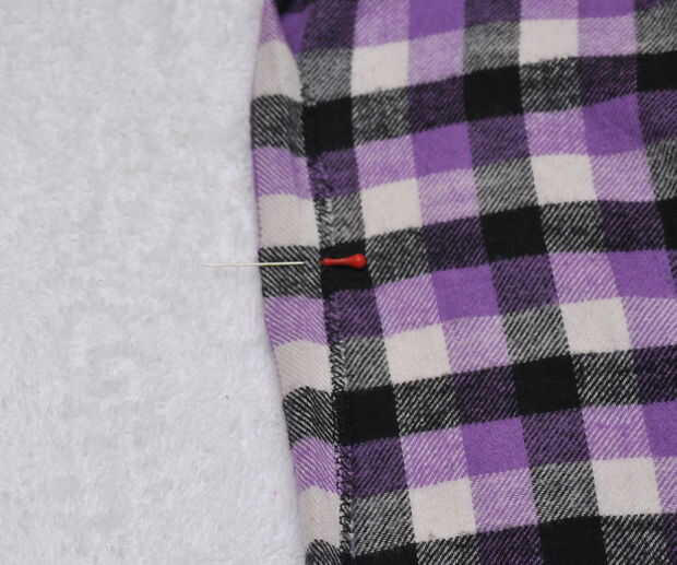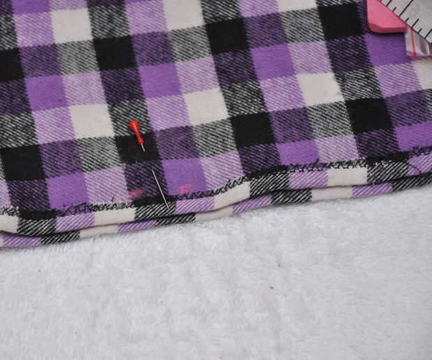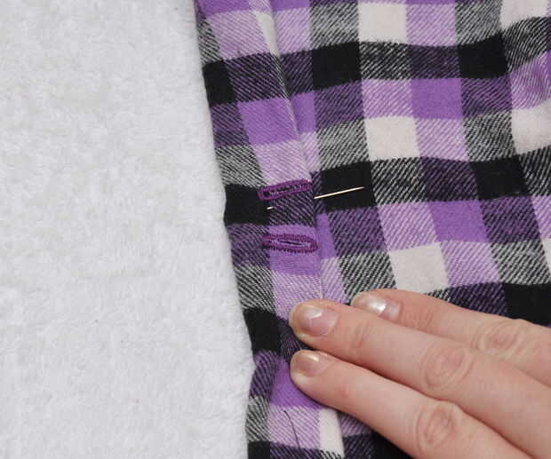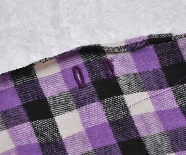 Una vez que tengas los ojales, (mirando a sus cortos adentro hacia afuera) doblan hacia abajo la parte superior de la tela justo debajo de los agujeros del botón y coser abajo. Esta es la zona donde estará el lazo.