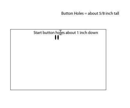 Como se aprecia en el dibujo, medida una pulgada hacia abajo desde la parte superior es donde debe comenzar la parte superior del agujero de botón. Mis ojales fueron aproximadamente 5/8 de pulgada. Sólo necesitan ser lo suficientemente grande para que entre y salga el cordón.