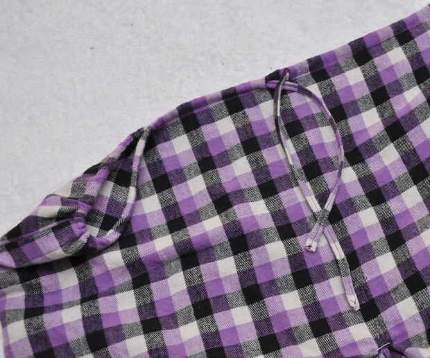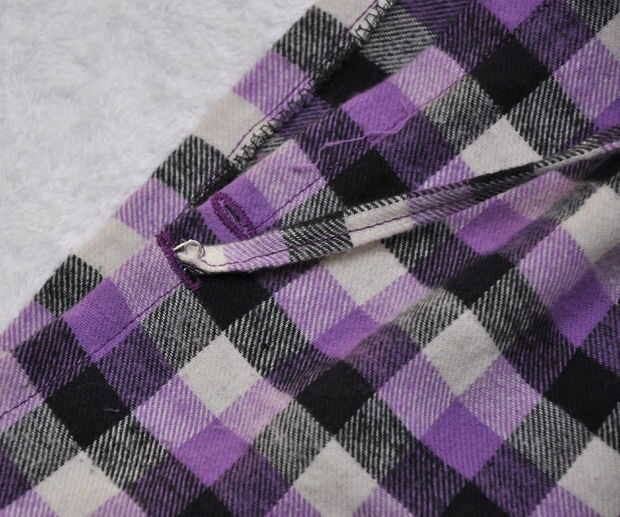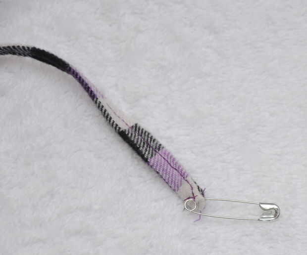 Hora de poner el lazo en shorts. Colocar un imperdible a un extremo. Meter en un ojal y cadena todo el camino por el espacio hasta llegar al otro ojal. Tenga cuidado a los lados, no quieren sacar sus puntadas.